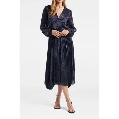 Forever New Sahara Wrap Plisse Midi Dress Navy