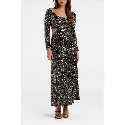 Forever New Sequin Dressi Cut Out Back Mid Black
