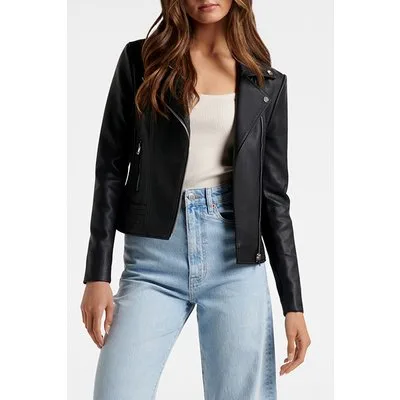 Forever New Skye Polyurethane Biker Jacket Black