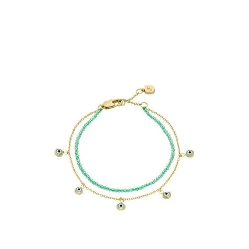 Omring jezelf met positieve energie met onze Sutton Evil Eye-collectie. Onze armband met meerdere strengen combineert felgroene glazen kralen met een glinsterende messing ketting. Verstel de karabijnsluiting voor een perfecte pasvorm op maat. Dit opvallende item combineert gedurfde kleur met verfijnde details.