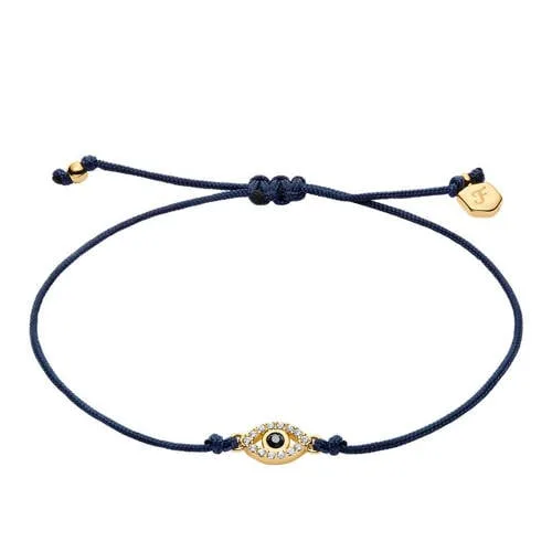 Voeg wat kleur toe aan je collectie! Deze armband heeft een delicaat pavé bedeltje van gepolijst goudkleurig messing in de vorm van een boos oog. Een gekleurd koord met een schuifsluiting zorgt voor een comfortabele en stevige pasvorm.