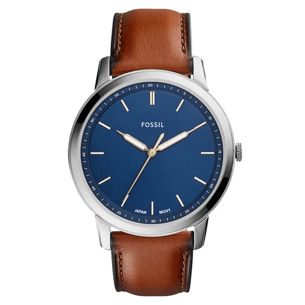 FOSSIL Analoog horloge 'The Minimalist 3H' donkerblauw / bruin /...
