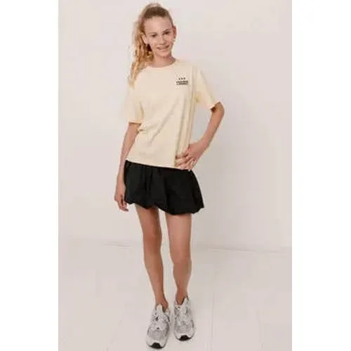 Deze zwarte meisjes ballonrok van 100% katoen van Frankie&Liberty is een praktische basic met een speelse vorm. De luchtige stof en het ballonmodel geven een vrolijke uitstraling, terwijl de zwarte kleur ervoor zorgt dat de rok makkelijk te combineren is met tops, sweaters en blouses. Geschikt voor school, een feestje of een dagje weg.Comfort en details voor elke dag Gemaakt van 100% katoen, voelt zacht aan en is prettig om de hele dag te dragen Ballonrok met kort model, geeft extra volume en een moderne look Elastische tailleband, de rok trek je eenvoudig aan en uit Binnenbroekje voor extra zekerheid en bewegingsvrijheid tijdens spelen en sporten Zwarte kleur, makkelijk te combineren met sneakers, sandalen of laarsjesStoer en speels te stylenVoor school combineer je deze rok simpel met een basic T-shirt en een vest. Voor een meer opvallende outfit kan er een graphic sweater of blouse boven, zodat het silhouet in balans blijft met het volumineuze rokje. Dankzij het binnenbroekje kan er zonder zorgen gerend, gefietst en gespeeld worden.Frankie&Liberty voor modebewuste meidenFrankie&Liberty maakt kleding voor meiden die houden van een eigentijdse stijl met een stoere touch. De ontwerpen sluiten aan op de laatste trends en zijn tegelijk praktisch in het dagelijks leven. Zo krijgt jouw kind mode die er modern uitziet en prettig zit, van schooldag tot logeerpartij.Met deze rok voeg je een veelzijdig stuk toe aan de kast dat bij veel outfits past.