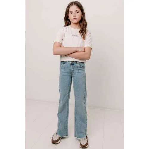 Dit ecru katoenen meisjes T-shirt van Frankie&Liberty is een praktische basic met een trendy twist. De zachte kleur laat zich makkelijk combineren met jeans, een rok of jouw favoriete short, terwijl de tekstprint zorgt voor een frisse, eigentijdse look. Gemaakt van 100% katoen, voelt de stof luchtig en soepel aan, geschikt voor schooldagen, weekend en vakantie.Dagelijks comfort met een trendy uitstraling Gemaakt van 100% katoen, dat prettig aanvoelt op de huid en goed ademt Ecru kleur die eenvoudig te combineren is met verschillende stijlen en kleuren Korte mouwen met wijde pasvorm voor een relaxte, modieuze look Ronde hals die comfortabel zit en mooi aansluit Geen sluiting, het T-shirt trek je gewoon over het hoofd aan Tekstprint aan de voorkant voor een speels en eigentijds accent Geschikt voor schoolkinderen en tieners, passend bij de trendy collectieMakkelijk te stylen voor elke dagVoor een casual schooloutfit combineer je dit T-shirt met een losse jeans en sneakers. Op warmere dagen staat het ook goed op een korte broek of een zwierige rok. De wijde mouwen geven extra bewegingsvrijheid, waardoor er veel ruimte is tijdens spelen, fietsen of chillen met vriendinnen.Frankie&Liberty voor moderne girlsFrankie&Liberty ontwerpt mode voor meiden die houden van een eigen stijl, met items die meegaan met de laatste trends en toch comfortabel blijven. De collecties sluiten aan bij het leven van schoolkinderen en tieners, met aandacht voor draagbare pasvormen en stoere, eigentijdse details.Een frisse basic die moeiteloos meebeweegt met drukke dagen en ontspannen momenten.