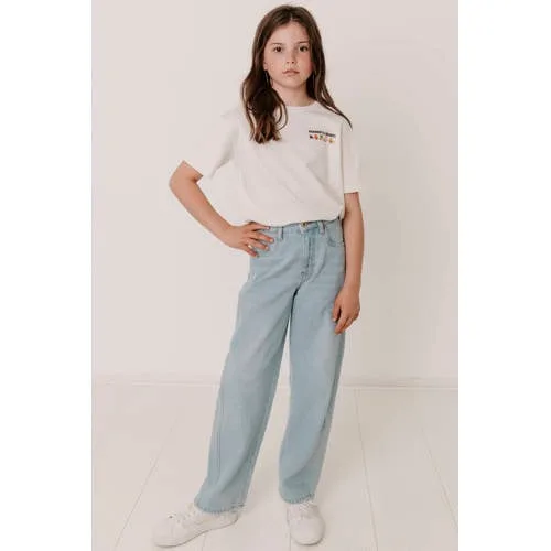 Stoer, maar toch makkelijk te combineren: dit witte meisjes T-shirt van katoen met backprint van Frankie&Liberty is een fijne basic met een trendy twist. De voorkant oogt rustig, terwijl op de achterkant een opvallende print zorgt voor een verrassend detail. Ideaal voor schooldagen, vrije tijd en alles daartussenin.Details die het verschil maken Gemaakt van 100% katoen, dat zacht aanvoelt op de huid en prettig draagt, ook op warme dagen Witte kleur die gemakkelijk te combineren is met jeans, shorts of een rok Korte mouwen met een wijde pasvorm voor een ontspannen, luchtig gevoel Ronde hals die comfortabel sluit zonder te knellen Backprint als eyecatcher, de voorkant blijft rustig en clean Geen sluiting, het T-shirt trek je gewoon over het hoofd aan Geschikt voor dagelijks gebruik en eenvoudig in te passen in een moderne garderobeElke dag draagbaarDit T-shirt past makkelijk in de kast van een kind dat zelf al graag haar outfits kiest. Combineer het met een wijde jeans en sneakers voor een relaxte look of met een rokje voor een meer vrouwelijke stijl. De soepele katoenen stof maakt het een fijne keuze voor lange dagen in de klas of een middag buiten spelen.Frankie&Liberty voor eigentijdse kidsFrankie&Liberty ontwerpt mode met een eigen gezicht. De collecties sluiten aan op actuele trends en combineren die met draagbare pasvormen en comfortabele materialen. Zo ontstaat kleding waarin kinderen vrij kunnen bewegen en zichzelf kunnen zijn.Een eigentijds T-shirt dat moeiteloos meegroeit met de stijl van je kind.