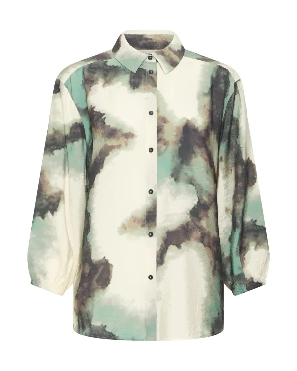 Fransa Blouse ‘FRAYLA SH 1’ crème / olijfgroen / mintgroen