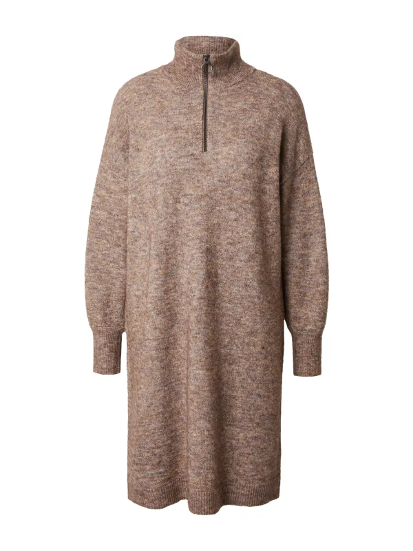 Fransa Gebreide jurk ‘Sanny’ bruin gemêleerd
