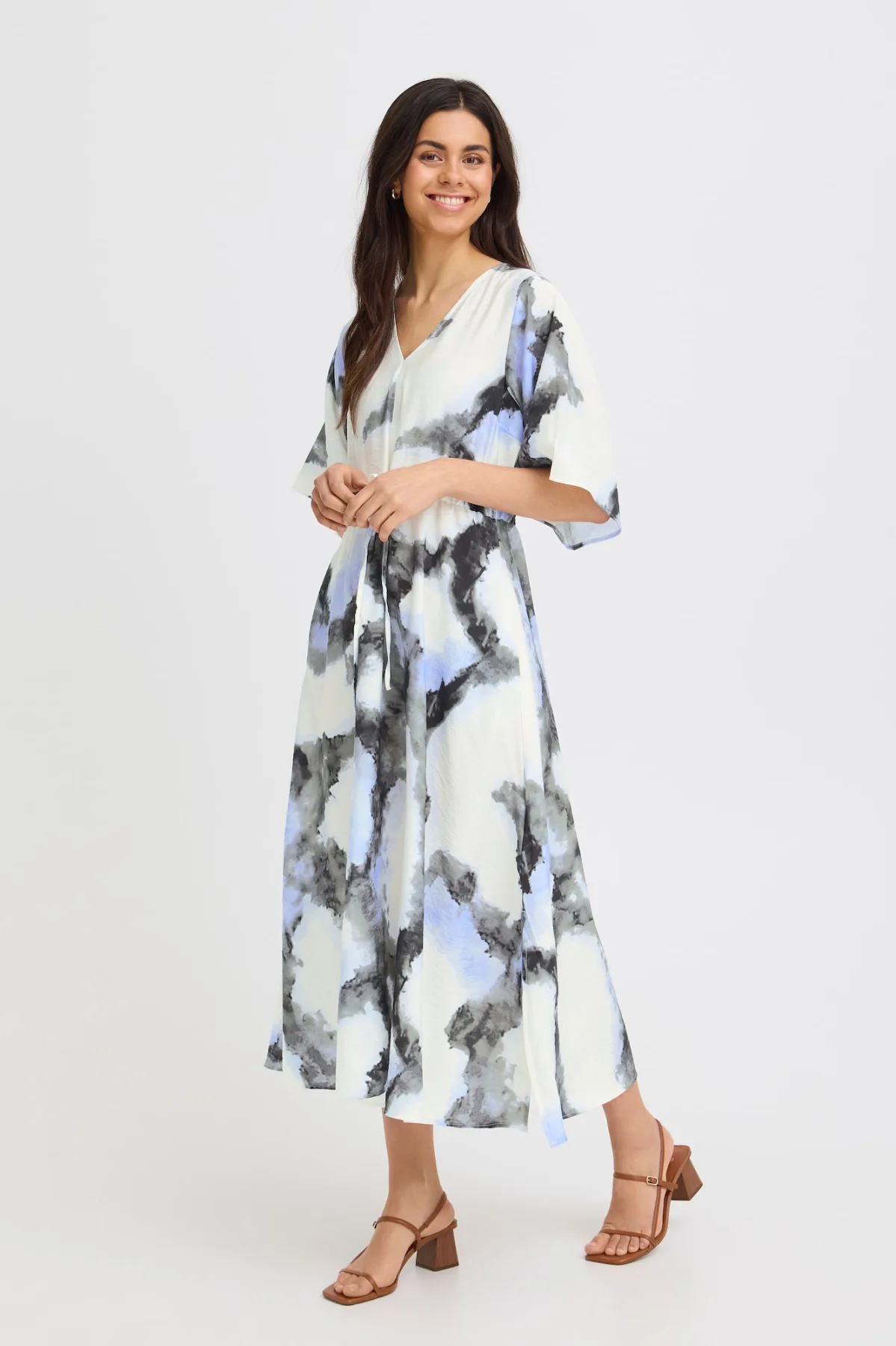 Design: Met band/snoer; Materiaal: Viscose; Halstype: V-hals; Motief: Kleurverloop; Extra's: All-over patroon; Lengte: 7/8 lengte; Pasvorm: Normale pasvorm; Armlengte: Halve mouw