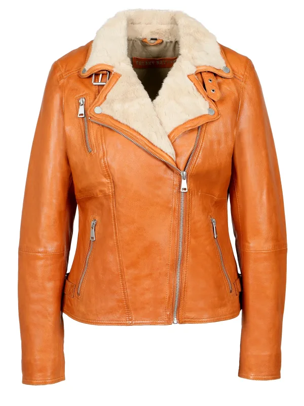 Design: Revers kraag, Ritszakken aan de zijkant; Type sluiting: Ritssluiting; Type jas: Bikerjack; Voering: Licht gevoerd; Materiaal: Leer; Motief: Effen; Extra's: Met faux bont trim; Pasvorm: Normale pasvorm