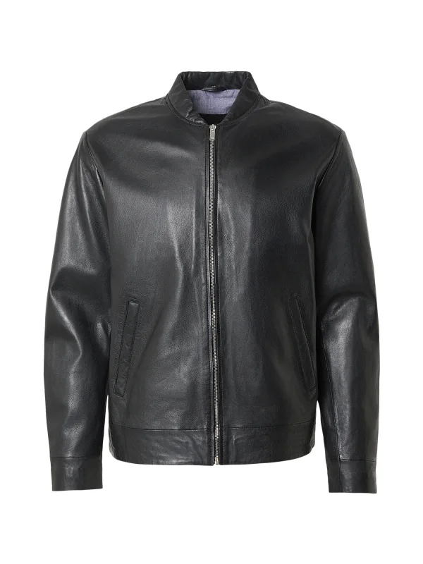 Design: Rechte zoom, Staande kraag, Zakken aan de zijkant; Type sluiting: Ritssluiting; Voering: Licht gevoerd; Materiaal: Leer; Motief: Effen; Extra's: Op staal naden, Gladde stof; Pasvorm: Normale pasvorm