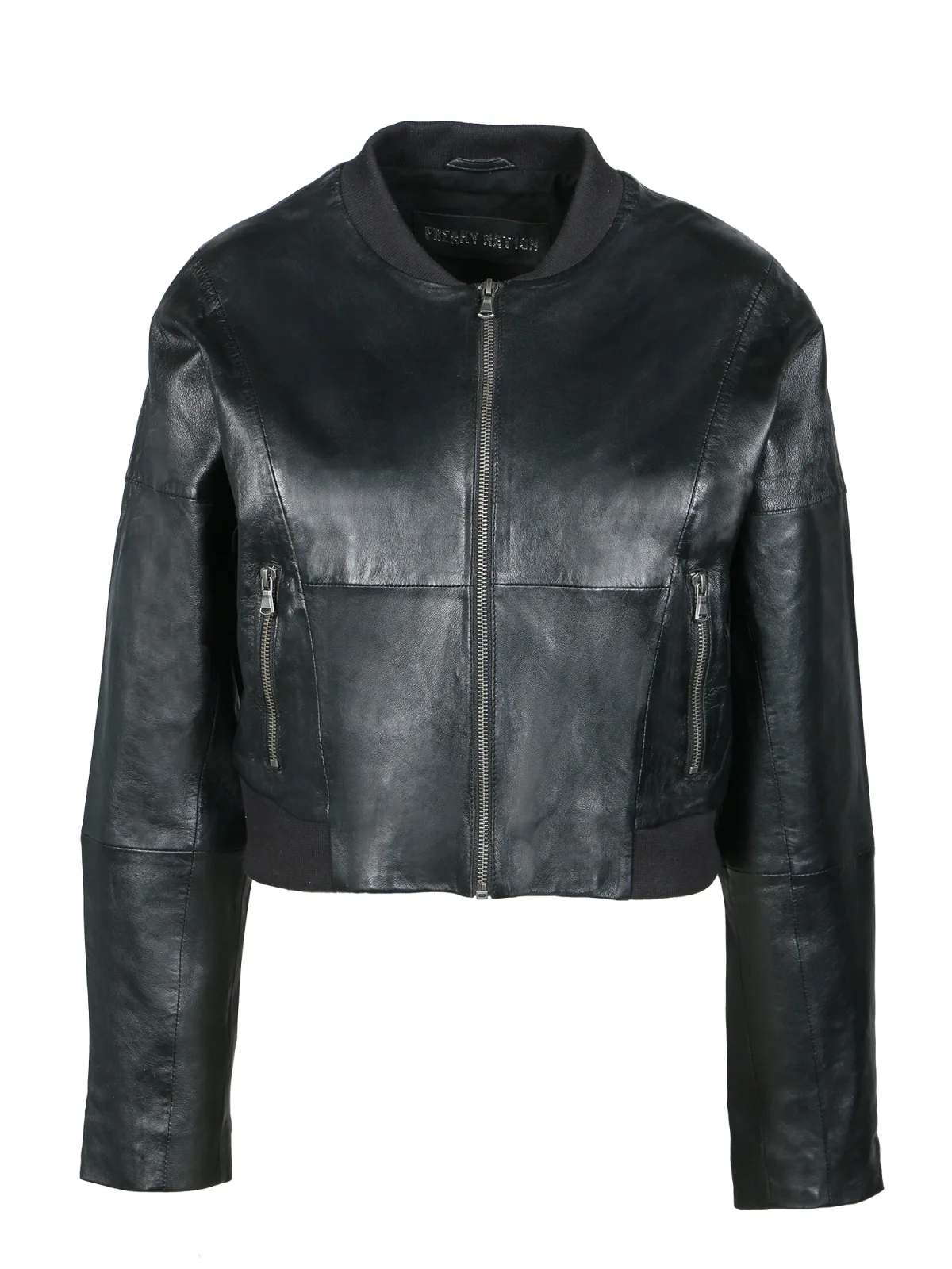 Design: Zakken aan de zijkant; Type sluiting: Ritssluiting; Type jas: Blouson; Voering: Licht gevoerd; Materiaal: Leer; Motief: Effen; Extra's: Op staal naden; Pasvorm: Normale pasvorm