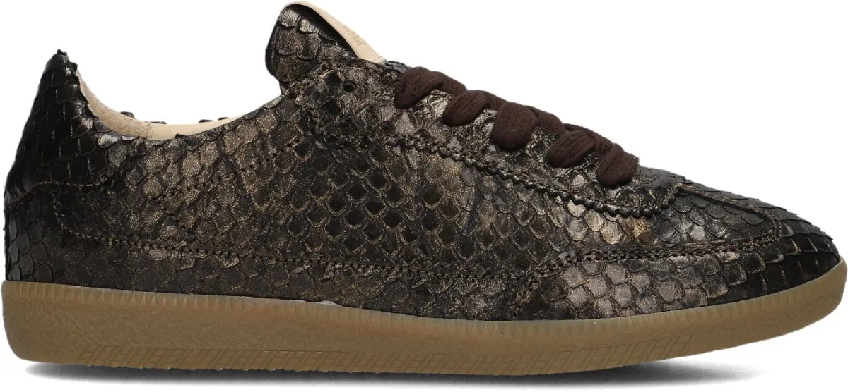 Ontdek de PEARL BASE sneakers van FRED DE LA BRETONIERE, perfect voor dames die stijlvol de herfst en winter willen trotseren. Deze sneakers hebben een opvallende slangenprint in een warme bronzen tint. De ronde neus en normale zool zorgen voor comfort tijdens een herfstwandeling in het park of een gezellige middag in de stad. De binnenkant van leer biedt een luxe gevoel, terwijl de rubberen zool grip garandeert. Combineer ze met een trendy trenchcoat of een warme wollen sjaal voor een complete look. De vetersluiting maakt het geheel af en zorgt voor een perfecte pasvorm.