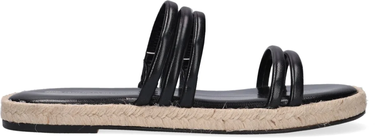 De kunstenaar FRED DE LA BRETONIERE begon in de jaren '60 te experimenteren met ontwerpen van schoenen en tassen voor de vrouw, dat pakte goed uit. Hij vond zijn passie en zijn producten werden snel opgepikt door consumenten en grote warenhuizen. Tot op de dag van vandaag weet dit kunstzinnige merk ons telkens weer te verrassen met klassieke, eigentijdse en iconische designs. Deze slipper 154010004 is niet alleen heel comfortabel maar ziet er ook nog eens heel leuk uit dankzij de smalle zwarte leren bandjes. Het binnenwerk is gevoerd met leer en een vast zwart voetbed met gouden merkopdruk. De flexibele zool heeft een gevlochten jute tussenzool en een rubberen loopzool met fijn krokodillenprint. Een fijne slipper met allure!