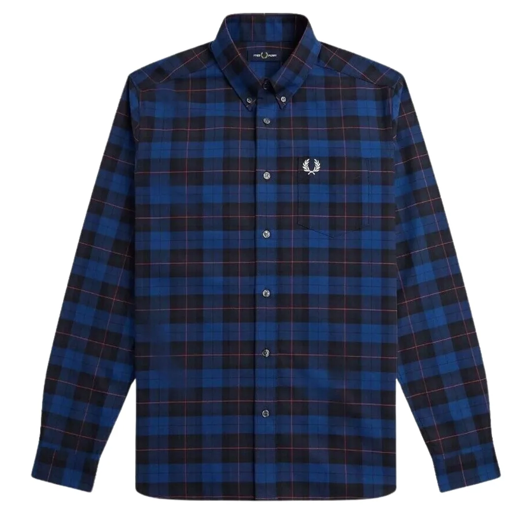 Fred Perry marineblauw tartan overhemd met lange mouwen