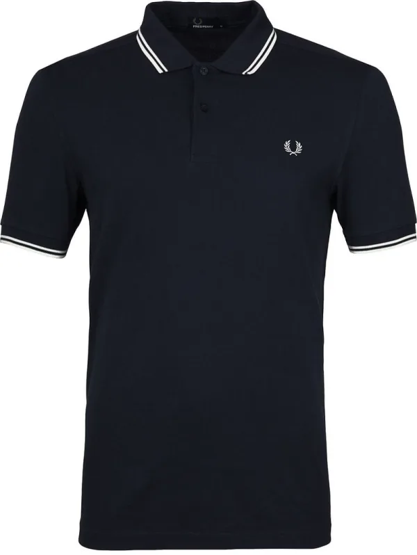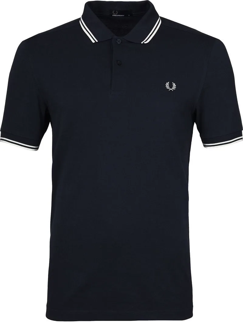 Fred Perry Heren Twin Tipped Poloshirt in Marineblauw/Wit/Wit