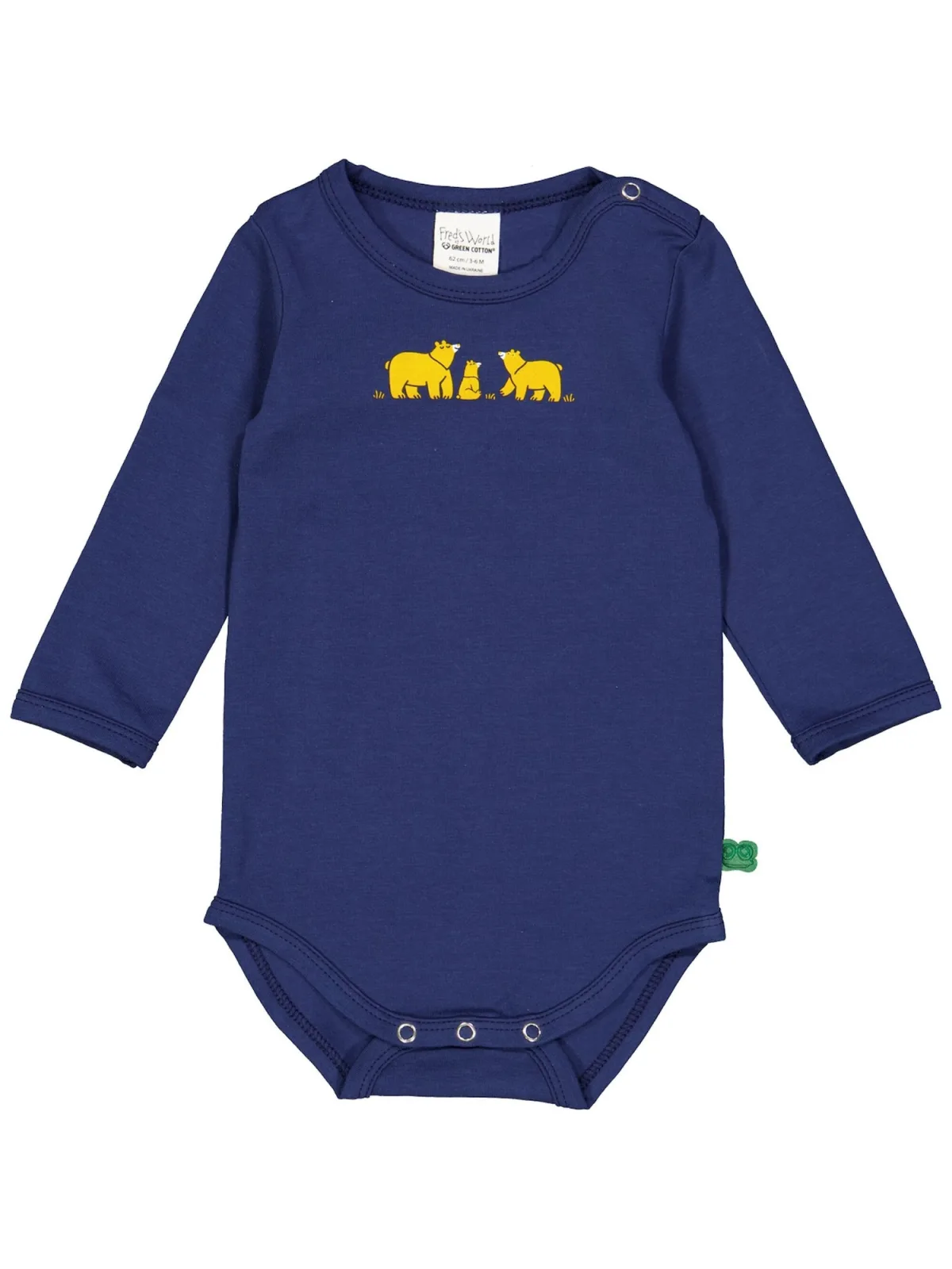 Specificaties: Fred’s World by GREEN COTTON Rompertje/body donkerblauw / geel
