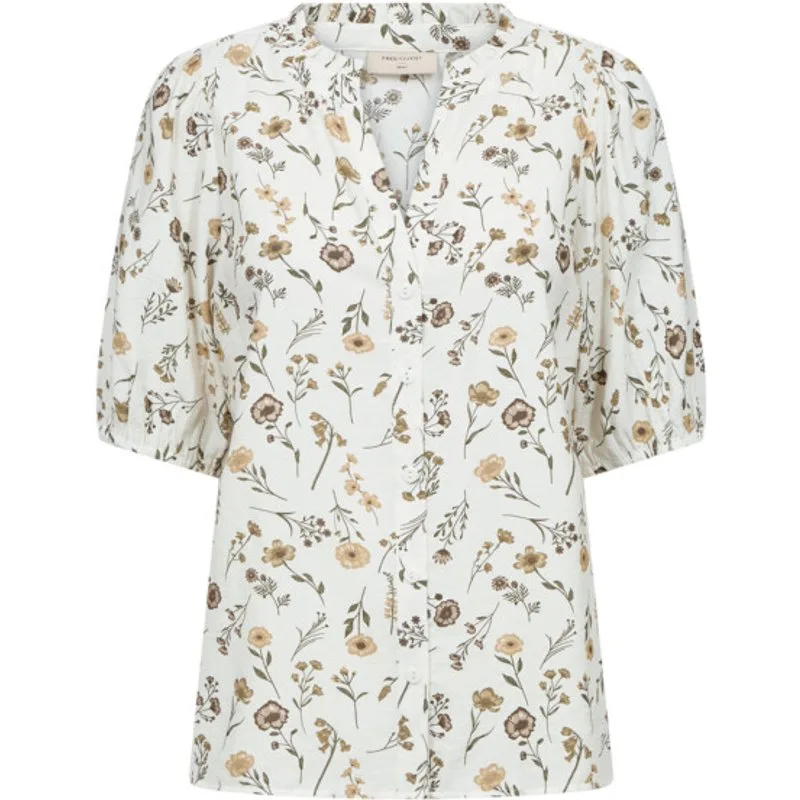 Shirt van Freequent, gemaakt van een lichte stof. Het shirt heeft een eenvoudig, losvallend model, een knoopsluiting aan de voorkant, halflange mouwen met elastische boord en een V-hals met een gegolfde rand. Materiaal 84% viscose 16% polyamide Korte mouw