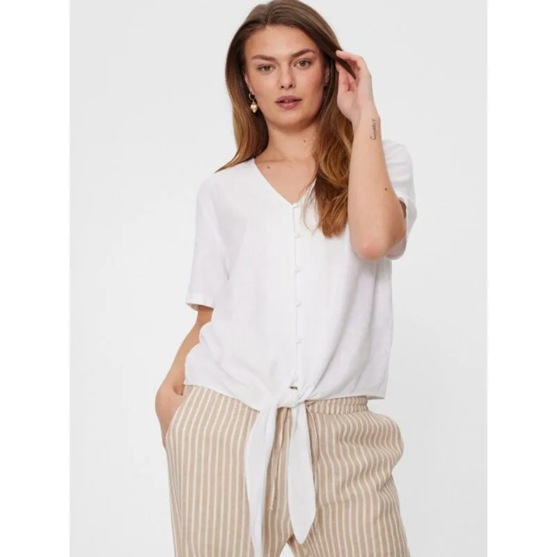 Blouse van Freequent in een lichte stof. De blouse heeft een vlot mode met een knoopsluiting aan de voorkant, korte mouwen, een casual pasvorm en strikbandje aan de onderkant voor een speels effect. Materiaal: 55% linnen 45% viscose. Patroon: effen. Valt op de maat. Wasvoorschrift: Machine Was 30 ° C fijne was. Niet in de droogtrommel. Krimp waarschuwing - kan in de wasmachine met maximaal 5% krimpen.