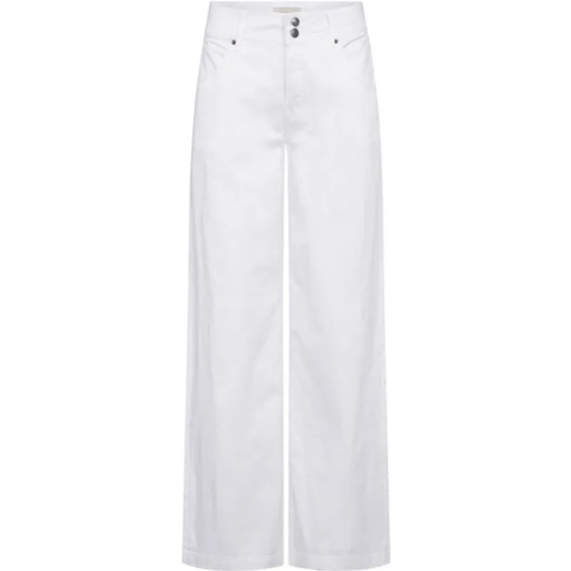 Broek van het merk Freequent in het model Lopez in de kleur Brilliant White is een hoge taille is een wide-leg broek in comfortabele stretchkatoen. Met klassieke five-pocket, riemlussen en rits-knoopsluiting. Materiaal: 97% katoen 3% elastaan. Valt op de maat. Binnenbeenlengte: 80,5 cm (opgemeten bij maat s) Dubbele knoopsluiting, ritssluiting en heeft steekzakken en achterzakken.