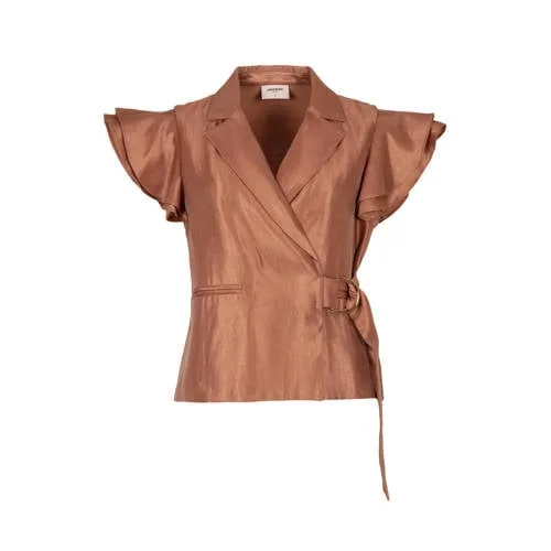 Deze koperkleurige dames blouse van Freebird valt meteen op door de subtiele glans en vrouwelijke details. De blouse heeft een klassieke kraag en kapmouwen, waardoor de schouders elegant uitkomen. De zachte, soepele stof met lichte glans beweegt mooi met je mee, ideaal voor een feestelijke gelegenheid in het voorjaar.Elegante details in koperkleur Gemaakt van viscose en polyamide voor een soepele, gladde stof met een chique glans Klassieke kraag voor een nette, verzorgde uitstraling Kapmouwen die de bovenarmen subtiel bedekken Ceintuur in de taille om je silhouet mooi te accentueren Ruches en glimmende finish voor een feestelijke look Effen koperkleur die mooi combineert met zwart, crème of beige Sierzakken aan de voorkant als stijlvol detail Geen sluiting, je trekt de blouse eenvoudig over het hoofd aanFeestelijk voor bruiloft of avond uitDeze blouse past goed bij gelegenheden zoals een bruiloft, etentje of feest. Combineer met een hoge pantalon of een nette rok en sandalen of hakken. De ceintuur strik je zoals jij het mooi vindt, wat de blouse zowel losjes als meer getailleerd laat dragen.Freebird: statement pieces met aandacht voor detailsFreebird staat bekend om uitgesproken items met vrouwelijke lijnen en zorg voor afwerking. In de collecties komen rijke kleuren, opvallende details en draagbare pasvormen samen. Je kiest hiermee voor een blouse die is ontworpen om je garderobe net wat specialer te maken.Een koperkleurige blikvanger die je feestelijke outfit eenvoudig compleet maakt.