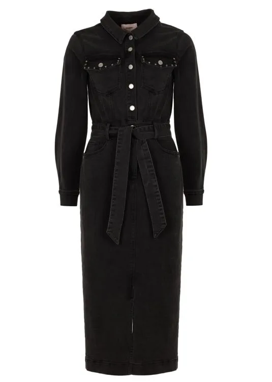 Ontdek de verfijning van de Freebird Jurk Danya in een strakke denim-stretch uitvoering. Deze elegante zwarte jurk is de aanvulling die je garderobe verdient.