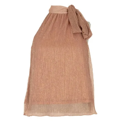 Deze koperkleurige dames top met choker van Freebird geeft elke feestelijke outfit direct een moderne, opvallende uitstraling. De glanzende stof met subtiele metalen garens vangt mooi het licht, waardoor de top ideaal is voor een bruiloft of een avondje uit. Door het mouwloze model oogt het geheel luchtig en vrouwelijk, terwijl de aangesloten chokerhals net wat extra spanning toevoegt.Blikvanger met choker en strikdetail Koperkleurige top met effen design dat gemakkelijk te combineren is met een rok of pantalon Mouwloos model dat prettig draagt tijdens een feest of drukke dag met gasten Choker kraag voor een moderne halslijn met een elegante, strakke look Strikje als detail in de hals zorgt voor een verfijnde afwerking Glanzend materiaal met metalen garens dat een luxe uitstraling geeft Onderdeel van de Boutique en Studio collectie, passend bij een feestelijke stijlFeestelijke top voor bruiloft en partyDeze top komt goed tot zijn recht in een feestelijke setting. Combineer met een hoge zwarte pantalon en hakken voor een chique bruiloftslook of draag hem met een nauwsluitende rok en kleine clutch voor een feestje in de avond. Een neutrale blazer erover maakt de outfit net wat gekleder als dat nodig is.Freebird, voor stijlvolle momentenFreebird staat bekend om designs die speciaal zijn gemaakt voor momenten waarop je iets extra’s wilt dragen. De collecties richten zich op moderne, vrouwelijke silhouetten met doordachte details. Zo kies je voor kleding die prettig zit, er verzorgd uitziet en past bij bijzondere gelegenheden in jouw agenda.Een stijlvolle keuze als je een opvallende maar toegankelijke feestlook zoekt.