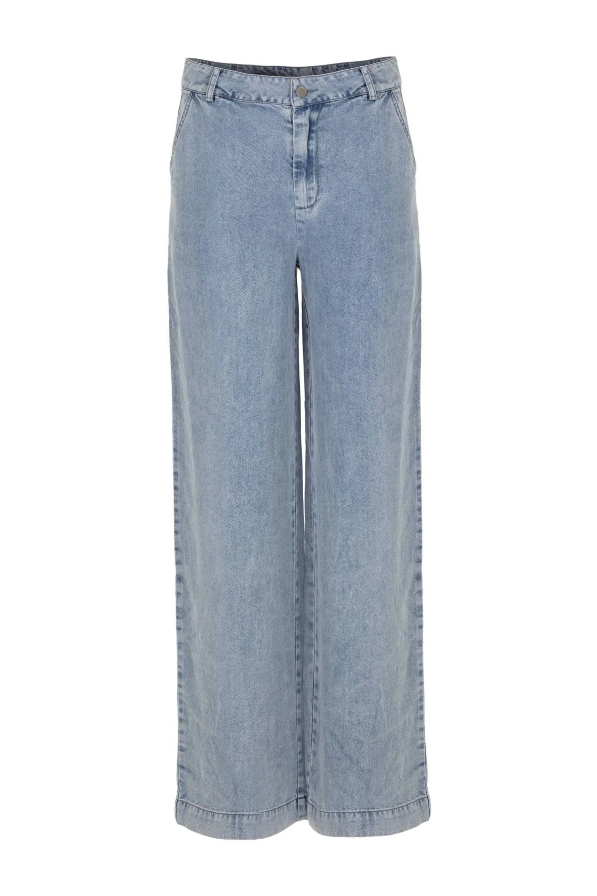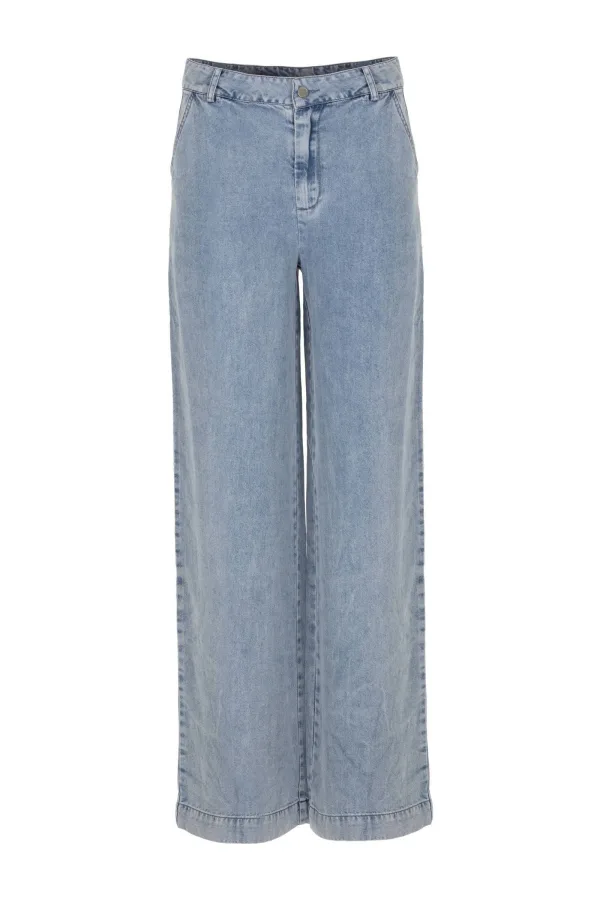 Deze damesjeans van Freebird, stijlnaam Pepa, komt in een light blue denim kleur. Gemaakt van 100% tencel met een regular waist. Voorzien van een rits- en knoopsluiting en heeft een wide leg pasvorm.