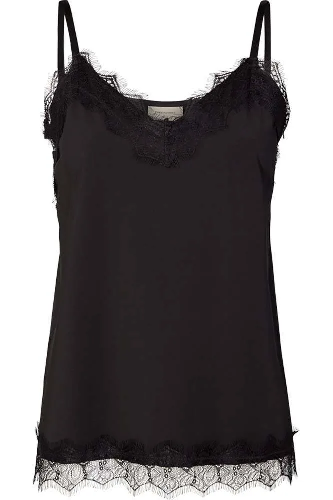 De top van Freequent is een mouwloze top met een sexy en vrouwelijke stijl, gekenmerkt door een losse pasvorm en een effen patroon. De elegante kanten details voegen een vleugje verfijning toe, waardoor het een veelzijdig kledingstuk is voor elke gelegenheid.