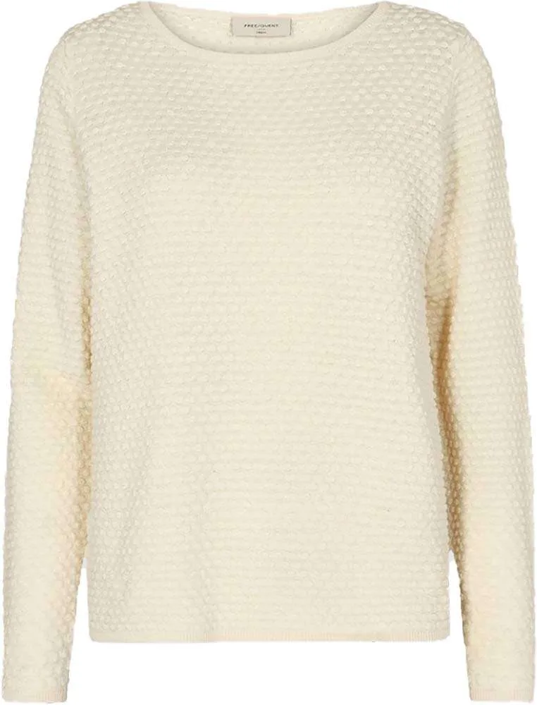 Deze pullover van Freequent is gemaakt van een zachte stof met een gestipt textuurpatroon. De pullover heeft een eenvoudige, elegante uitstraling met een ronde halslijn, lange mouwen en ribdetails. De slanke pasvorm en fijne breisel zorgen voor een stijlvolle en casual look.