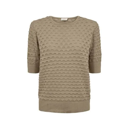 Deze zandkleurige gebreide dames top van katoen van FREEQUENT is een rustige basic die je zo het hele seizoen door draagt. De zachte, gebreide structuur en rechte mouwen geven een ontspannen uitstraling, terwijl de ronde hals het geheel vrouwelijk en eenvoudig houdt. Gemaakt van 100% katoen voelt de top prettig aan op de huid en is hij geschikt voor alledaags gebruik.Details die je elke dag aankunt Gemaakt van 100% katoen voor een zachte, ademende touch Zandkleurige, effen top die makkelijk combineert met je garderobe Gebreide kwaliteit met subtiel ingebreid patroon voor extra diepte Geribde boorden langs hals, mouwen en zoom voor een nette afwerking Rechte lange mouwen voor een ontspannen pasvorm Geen zakken, waardoor het silhouet rustig en strak blijftIdeaal voor het tussenseizoenDeze top is perfect voor lentedagen waarop een T-shirt net te fris is en een trui te warm. Combineer met een jeans of een rechte rok voor een eenvoudige, verzorgde look. De zandkleur laat zich makkelijk stylen met zowel lichte als donkere tinten.FREEQUENT in je kledingkastFREEQUENT staat bekend om kleding die goed in het dagelijks leven past. De collecties zijn ontworpen met aandacht voor draagbaarheid en een vrouwelijke uitstraling. Zo vul je je garderobe met stukken die je vaak en graag uit de kast pakt.Een rustige, gebreide basic waar je het hele seizoen op kunt vertrouwen.