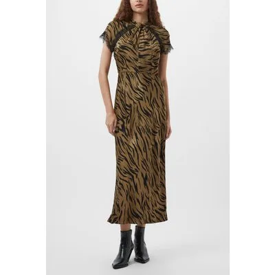 French Connection Abeline Ennis Satin Lace Dress Golden Olive Khaki