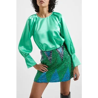 French Connection Adora Satin Top Green Mineral