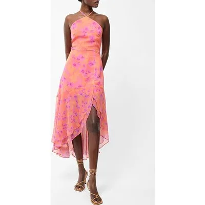 French Connection Arla Ruffle Halterneck Dress Coral Multi Prijzen
