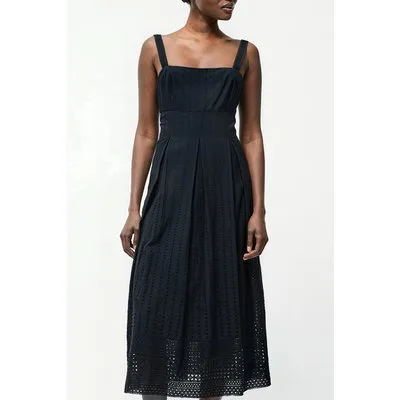 French Connection Broderie Strap Dress M Ss25 Black