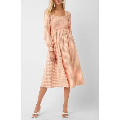 French Connection Classic Gingham Ls Sqr Nk Drs Orange