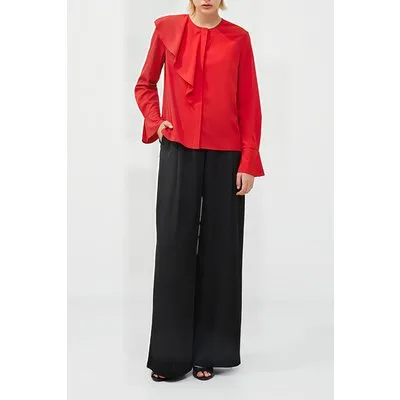 French Connection Crepe Light Asymm Frill Shirt Red