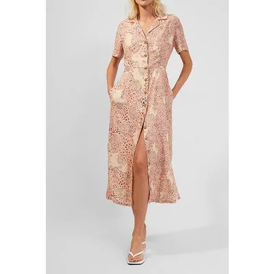 French Connection Demetra Drape Button Frnt Dres Peach Nectar Multi