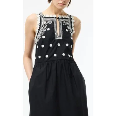 French Connection Devin Poplin Embroidered Midi Black