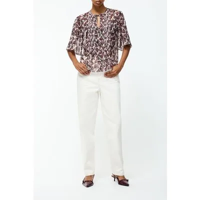 French Connection Elyse Hallie Crinkle Ss Top Blush Pink Floral