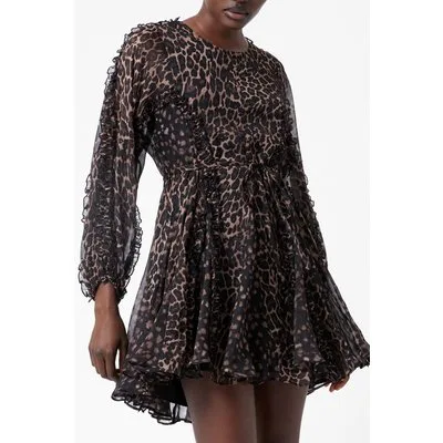 French Connection Emina Chiffon Leopard Ls Dress Leopard