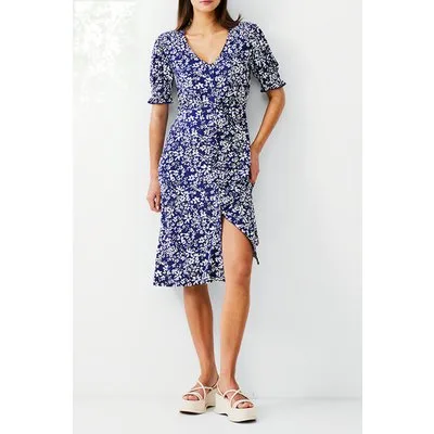 French Connection Florale Button-thru Dress Midi Dk Navy/white