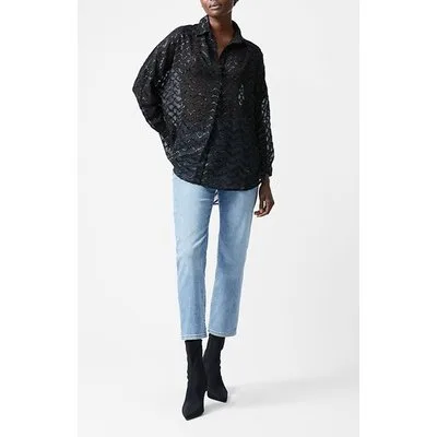French Connection Lurex Georgette Ls Popover Black Prijzen