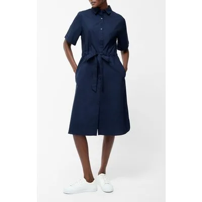 French Connection Poplin Tie Waist Shirt Dress Midnight Prijzen
