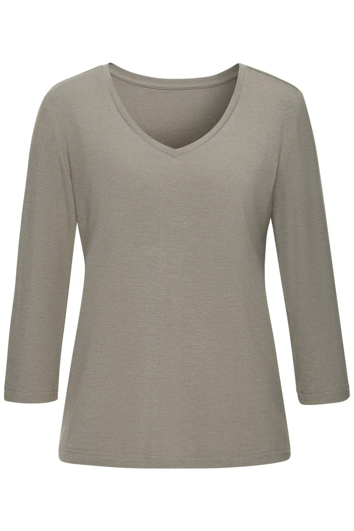 Design: Gevoerde zoom/rand; Materiaal: Jersey; Halstype: V-hals; Motief: Effen; Extra's: Op staal naden; Pasvorm: Normale pasvorm; Armlengte: Driekwart mouw; Lengte: Normale lengte