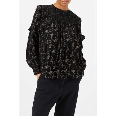 French Connection Stellar Foil Ls Rnd Neck Top Black Prijzen