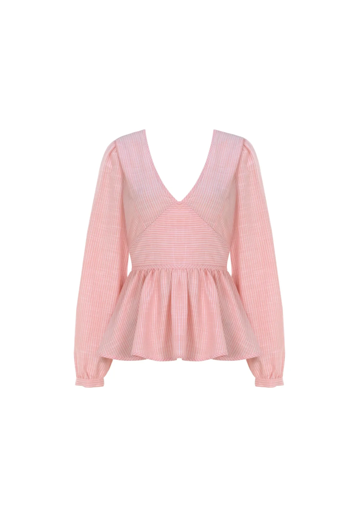 Blouse type: Blouseshirt; Type sluiting: Knoopsluiting; Materiaal: Katoen; Motief: Gestreept; Kraag: Zonder kraag; Details: Volant, Gedrapeerd, Backless; Pasvorm: Normale pasvorm; Armlengte: Lange mouw; Lengte: Normale lengte