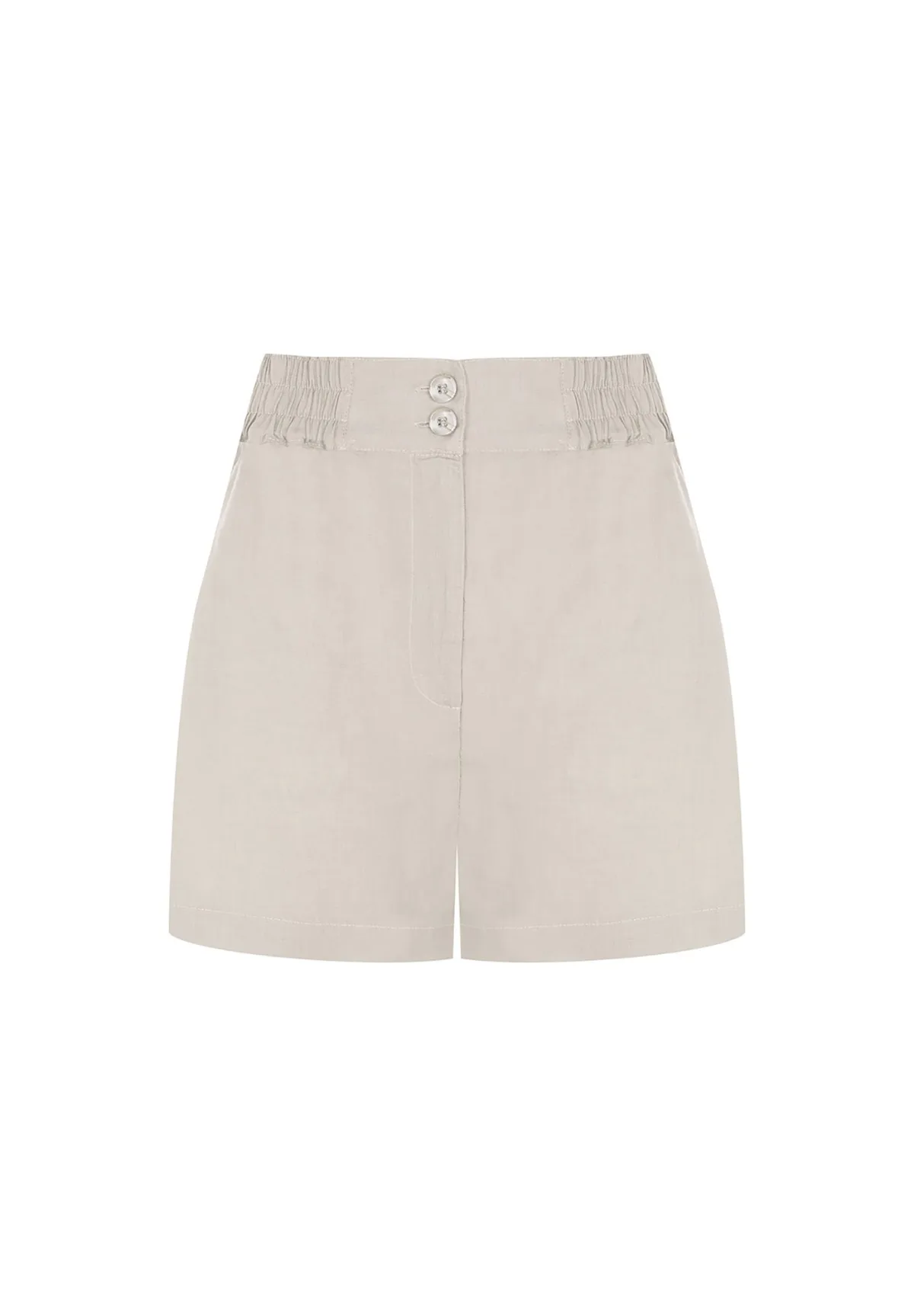 Design: Paspelzak; Type sluiting: Ritssluiting; Materiaal: Linnen; Motief: Effen; Details: Gedrapeerd; Lengte: Kort/mini; Pasvorm: Regular; Taillehoogte: High waist