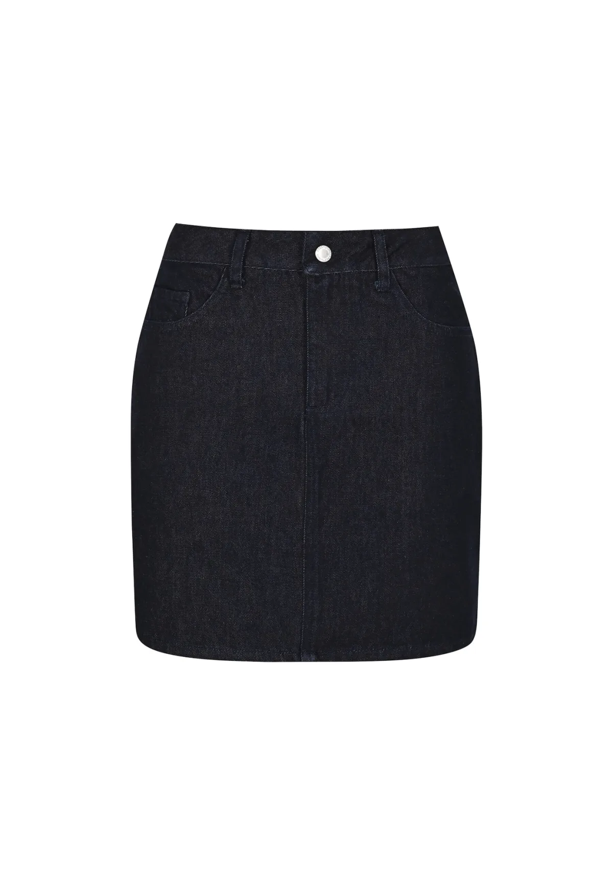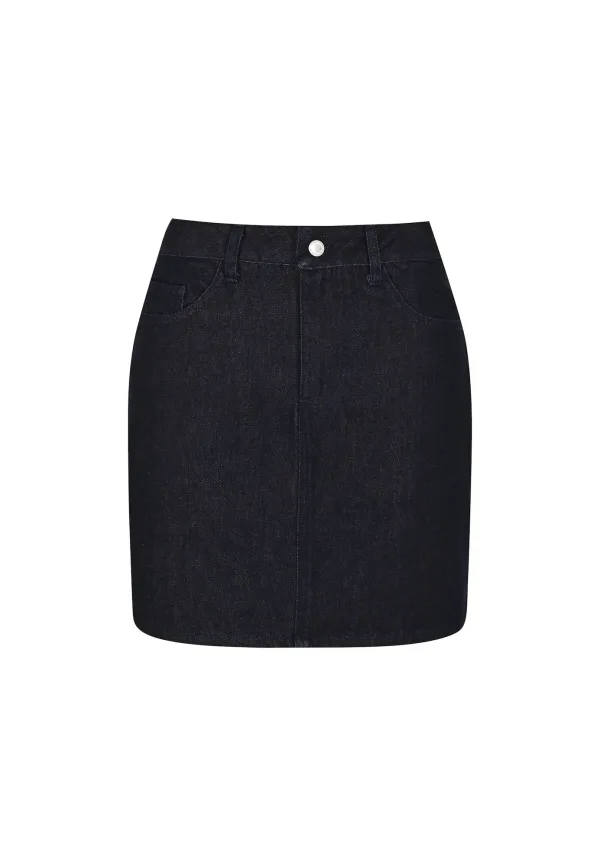 Design: Paspelzak; Type sluiting: Ritssluiting; Materiaal: Denim; Motief: Effen; Rokvorm: A-lijn rok; Extra's: Riemlussen; Lengte: Kort/mini; Pasvorm: Normale pasvorm