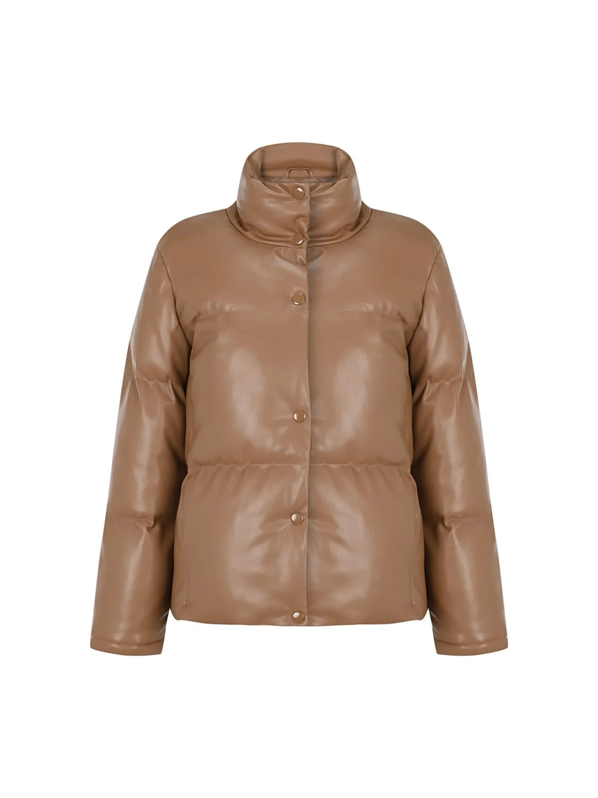 Design: Paspelzak; Type sluiting: Drukknoop; Type jas: Gewatteerde jas; Voering: Warm gevoerd; Materiaal: Imitatieleder; Motief: Effen; Extra's: Voelt zacht aan; Pasvorm: Normale pasvorm
