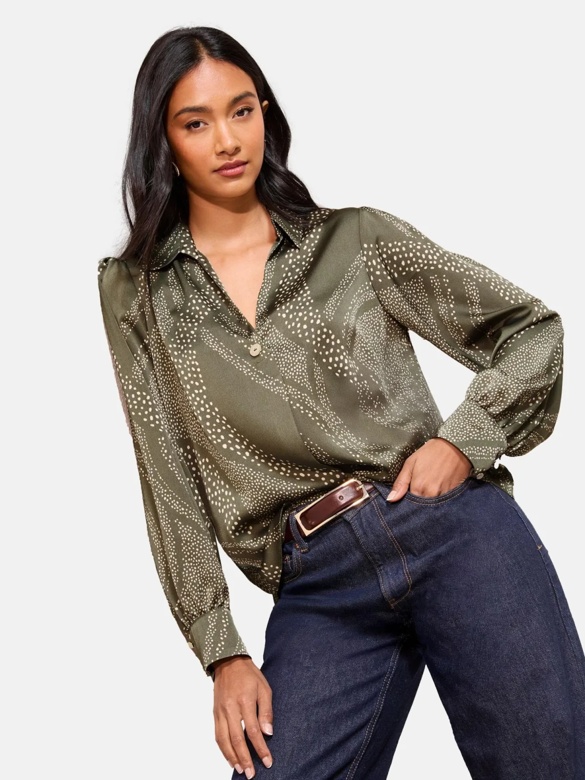 Specificaties: Friends Like These Blouse lichtbeige / olijfgroen